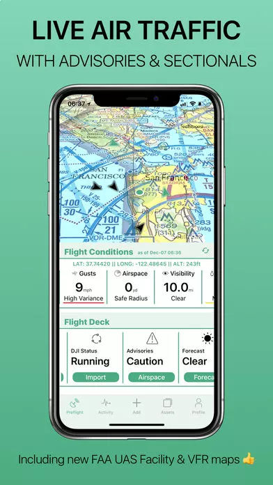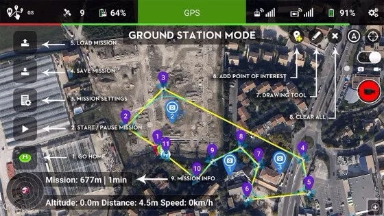 飞行时该软件也有多种功能,可以自动飞行,多人共享实时遥测,以及查看空域并实时接收空中交通情况。