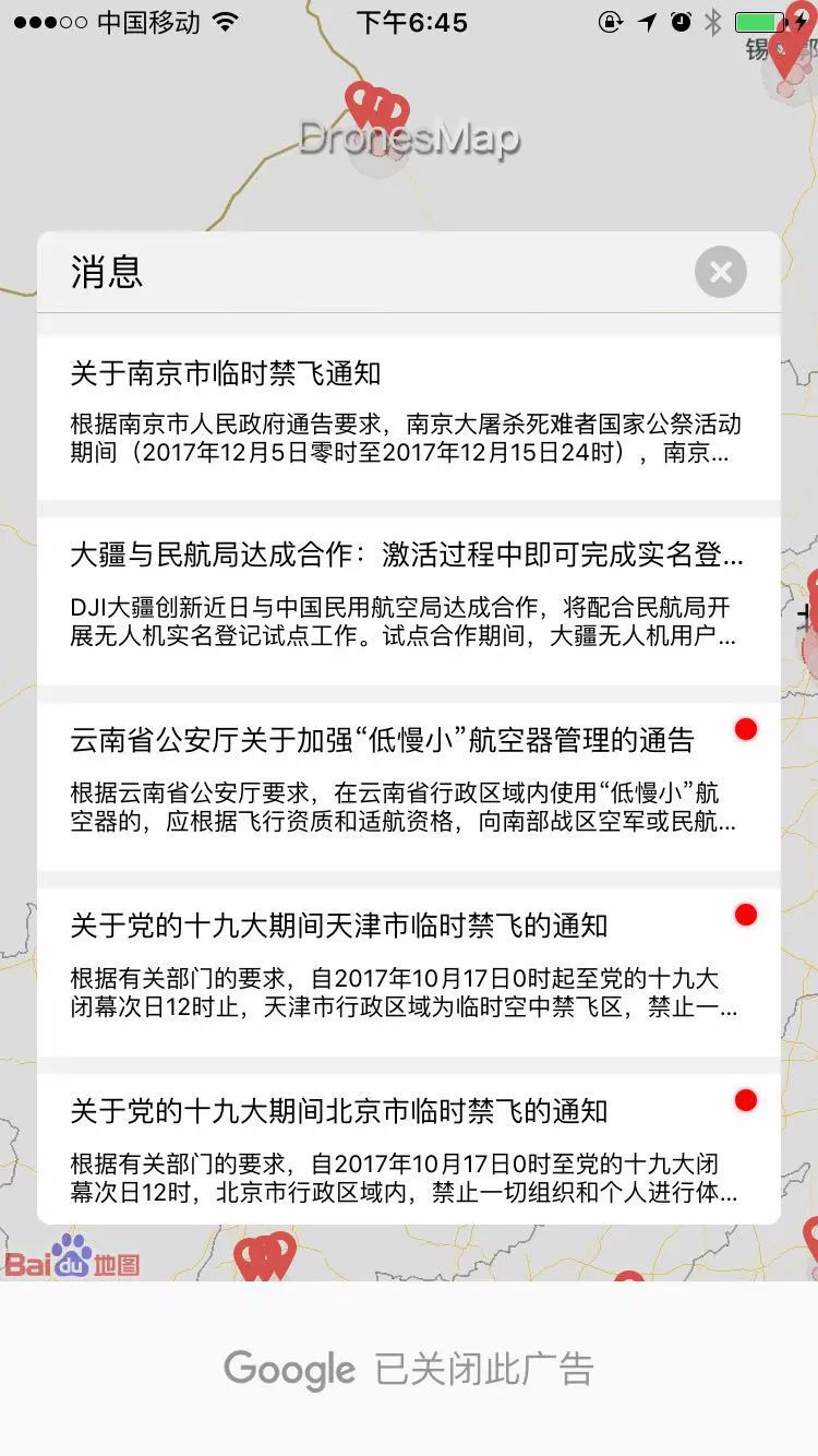 软件内置最新国际禁飞区区域划分 不急能看到国内的,国外的限飞,并且能够实时获取最新的天气状况数据,包括流、天气预报、风速、风向等。