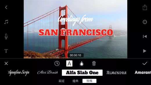 VUE 支持添加片头、水印、音乐甚至厂牌,显示时机和内容都可以自由订制。最新版本还能添加字幕,帮你更好地用视频表达自己,记录生活。