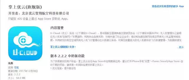 不过该软件应该是配备这一款无人机配件,能对无人机飞行过程实时监视,自动告警等功能。另外飞行的数据也可以实时上传,同监管部门协同管理,紧密结合民航最新政策法规,多终端云同步,无论在办公室还是室外,随时通过电脑、手机管理和监视无人机。除了优云,市面上还存在三家获得中国民航局批准的无人机管理云系统,功能大同小异。