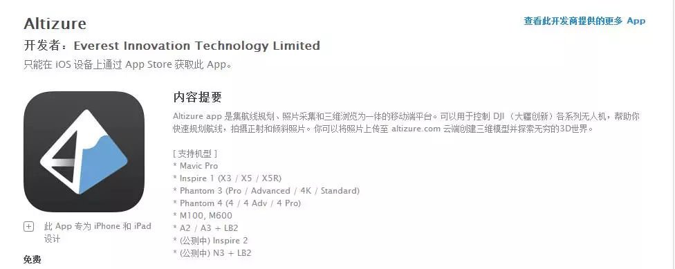 Altizure app 是集航线规划、照片采集和三维浏览为一体的移动端平台。主要用于正射、倾斜摄影等用途较多,可以用于控制 DJI (大疆创新)各系列无人机,帮助你快速规划航线,拍摄正射和倾斜照片。你可以将照片上传至 altizure.com 云端创建三维模型并探索无穷的3D世界。