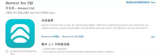 这款软件算是一个功能的整合的全能软件,包括飞行前的任务规划、飞行中种种功能以及飞行后的数据的统计,功能非常全面。并且几乎可以支持大疆的全系列产品,但该软件主要服务的是美国的无人机用户。