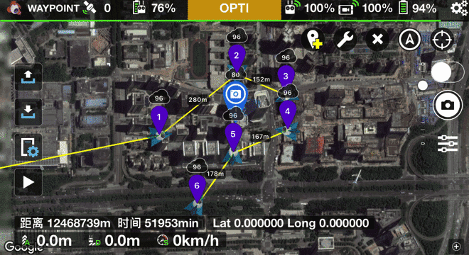 改软件可以测量飞行的两个航线之间点与点之间的距离 点击并按住就可以设定一个新的航点,方便易操作。