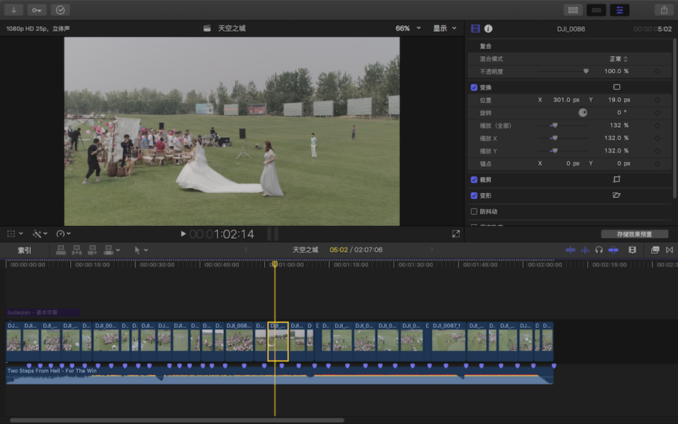 剪辑使用的Final Cut Pro X剪辑,以前Windows平台是用Premiere的。但自从用了FCPX,它的渲染效率和视频编码质量,是我转换平台的核心需求。