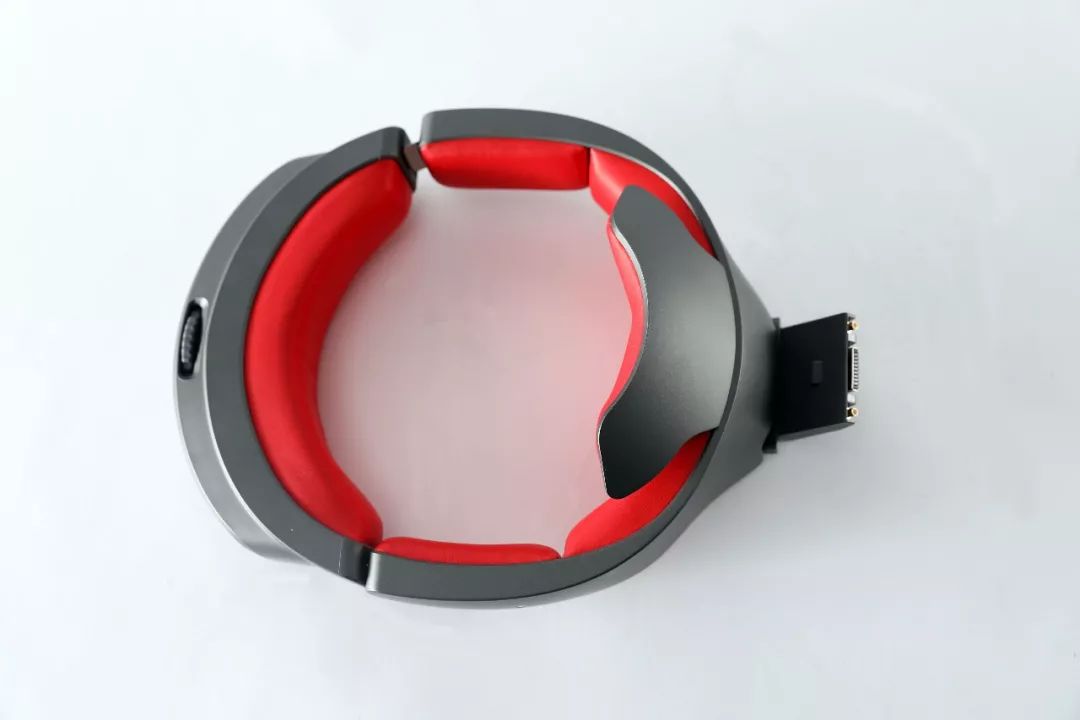 头带是可调整的,兽兽已经测试过了,对于大部分人的头型都适用。里面的红色部分材料很柔软,虽然整个眼镜的重量达到了1020g但是佩戴的时候丝毫未觉得头总要低头的感觉,那是因为这个头带里通过电池来配重,达到了平衡的效果。所以不用担心会变成不倒翁,头重脚轻。
