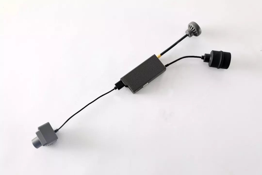 这次DJI在产品设计的时候考虑到了固定翼飞机FPV的使用,专门研发了天空端,天空端里分别有主机1台,摄像头1枚,2.4G+5.8G圆桶天线2根,2.4G宝塔天线2根以及2.4G+5.8G棒状天线2根。除此之外还有一堆的连接线。可以说是一应俱全,基本可以满足各种条件下的FPV飞行使用。