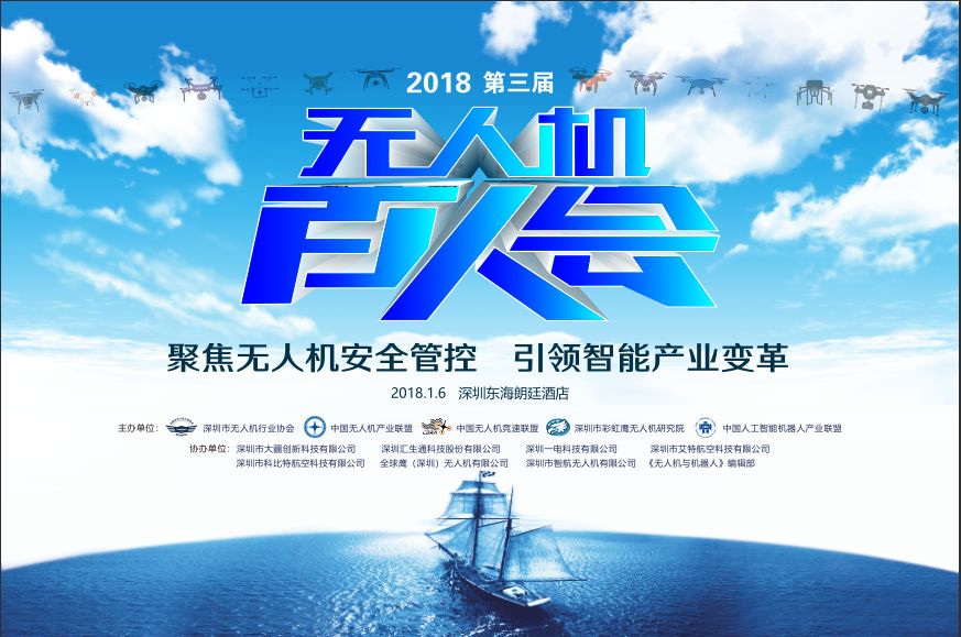 1月6日下午,2018第三届无人机百人会议在深圳朗廷酒店召开。本次无人机行业学术论坛由深圳市无人机行业协会、中国无人机产业联盟、中国无人机竞速联盟及深圳市彩虹鹰无人机研究院共同主办。