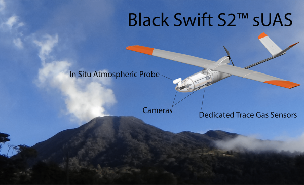 这个项目于2018年1月在哥斯达黎加进行,在Jorge Andres Diaz博士和哥斯达黎加大学的工作人员的帮助下,使用该公司最先进的sUAS ——Black Swift S2,配备了测量火山喷发中感应二氧化碳和水蒸汽的传感器。Black Swift S2的未来航班将包含能够测量甲烷(CH4),硫化氢(H2S)和二氧化硫(SO2)的传感器,用于评估火山颗粒大小和分布的浊度计,以及大气探头分析压力,温度,湿度和三维风向。
