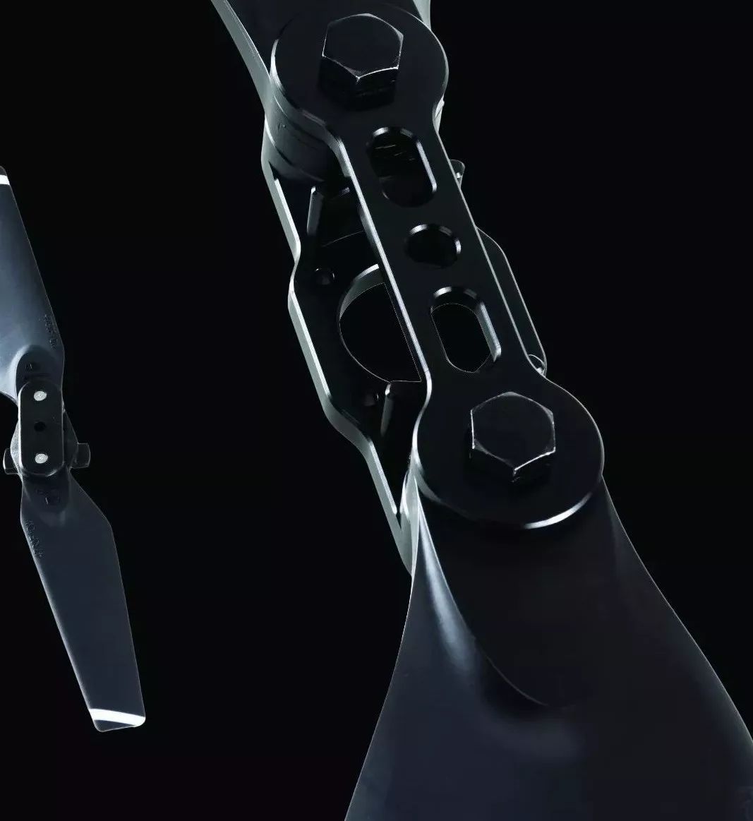 在“晓”Spark的这款产品中,延续了Mavic Pro的这种设计方式,搭配上“晓”Spark小巧的机身,显得非常完美。随后,在设计Mavic Air的桨叶结构时,考虑到飞机脚架的折叠方式,采用了精灵4的快拆直桨结构,也能够非常协调地把桨叶折叠到机身之内, 直桨和折叠桨在飞行气动性能上基本无差别,外观上兼具速度感和流线感。