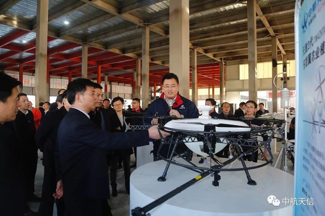 中航天信集团董事长刘臣就中航天信余干智能飞防基地的运营情况和主要产品向各位领导进行了介绍。各级领导对中航天信在植保飞防方面的工作给予了充分的肯定,对智慧农业在扶贫中所起到的作用给予的高度评价。