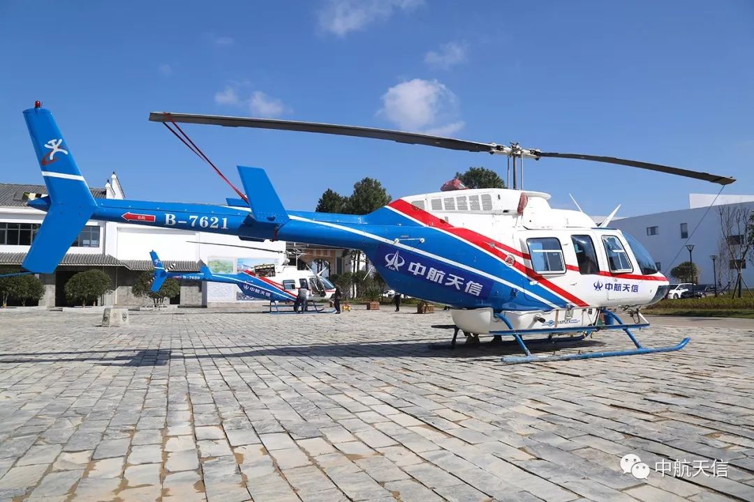 当天更加引人注目的还有楼前停着的两架贝尔206L4载人直升机。作为贫困县,余干经济发展的主要优势是资源和生态, 制约经济发展的主要难题是区位和交通。由于交通不便,形成不了大的外来客流,投资者不敢轻易进驻;由于信息闭塞,致使新事物、新思想、新观念传播慢,扶贫增收难。俗语说“要想富,先修路”,2018年,中航天信将以余干县为中心,围辐射江西省,发展“通航+旅游、医疗、培训”等一系列“通航+”产业,打开贫困山区空中通道,形成空中物流客流走廊。