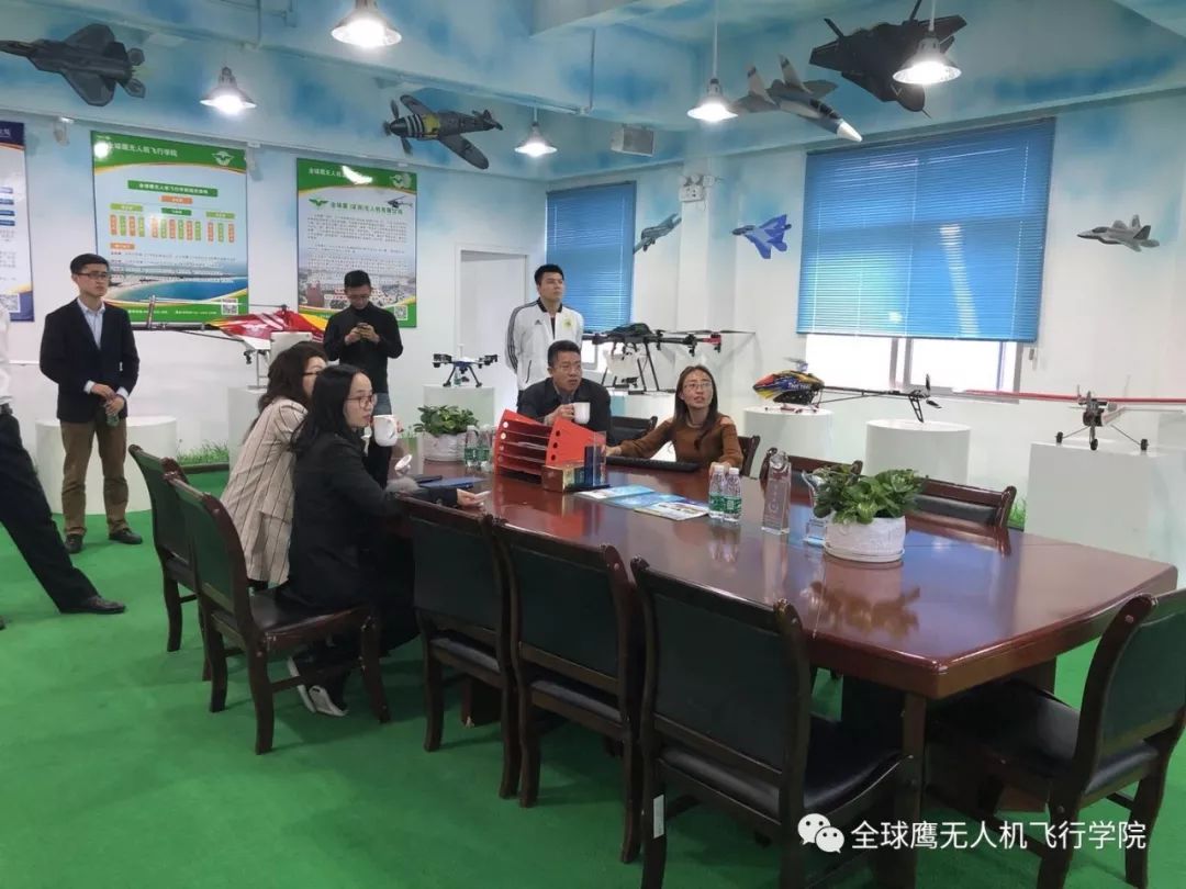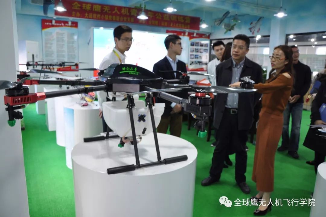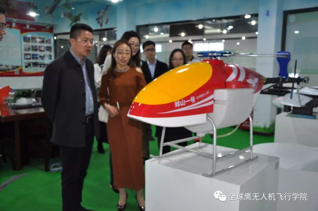 全球鹰董事长侯总为参观的领导讲解公司的工业级无人机以及培训无人机