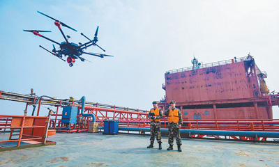 无人机在中石化胜利油田海上主产区开展专项巡航