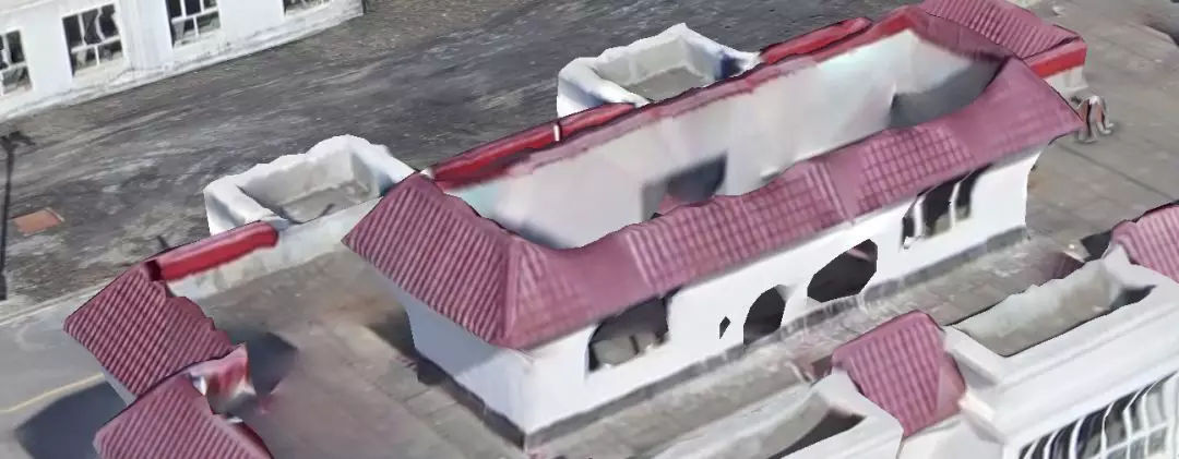 从建模效果来看,无论是摇摆式的双镜头,还是旋转式的双镜头,其朝向角均缺少下视镜头,下视镜头的缺失导致了类如建筑间缝处等地物场景的地方缺少原始数据,导致后期建模过程中细节不足,出现空洞。