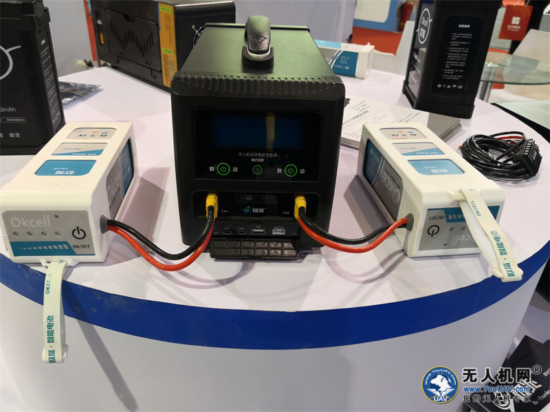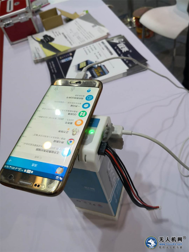 这一系列优良企业的产品琳琅满目的摆放在54平米的展位上,无人机、电池、电机、电调应有尽有。而其中最让小编侧目的是正方科技在此次展会上新推出的“无人机无线均衡供电系统”,即无线均衡智能电池以及配套的智能充电机系列产品。