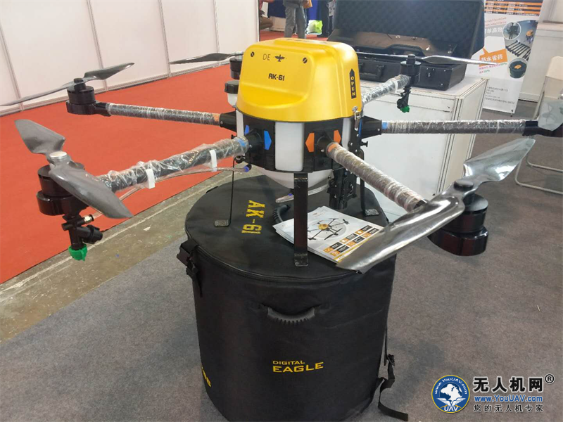 江苏数字鹰AK-61具有5-10米每秒的速度,作业更快更高效,该植保无人机药箱具有10L容量,而最大载荷可达12kg,续航时间为10-15分钟,推荐使用两块12000mAh电池。