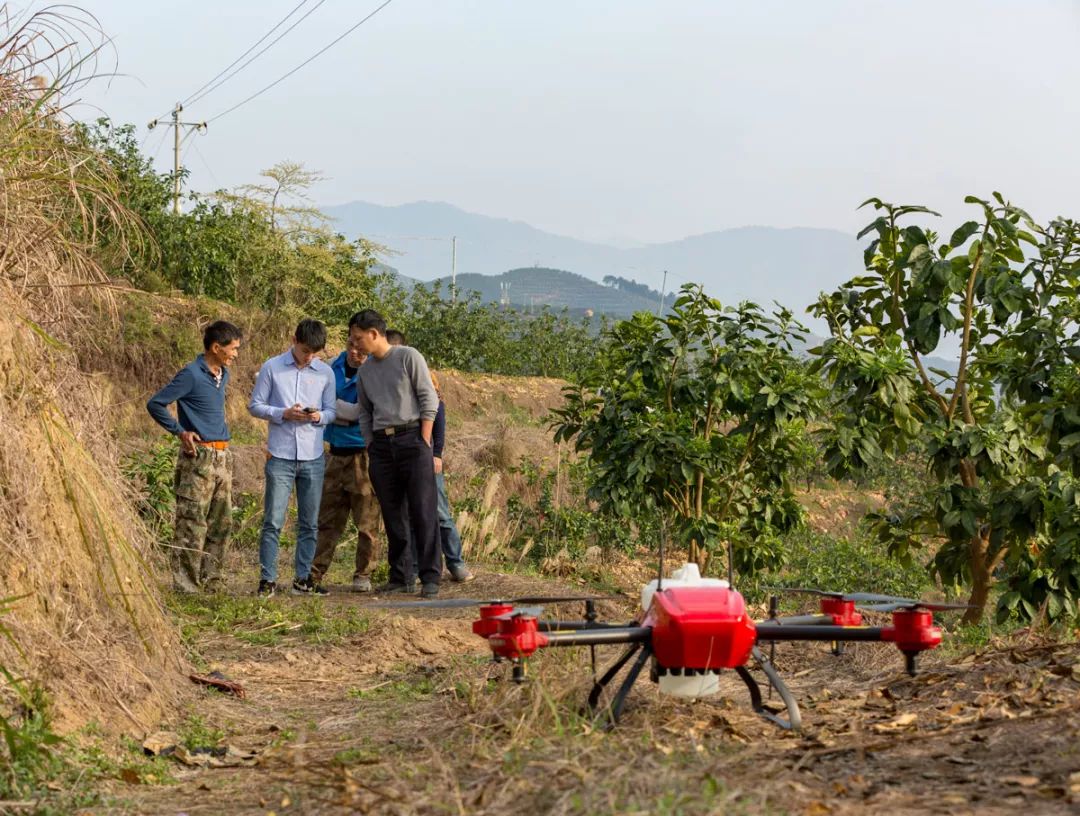 当身披红色铠甲的 P20 精准地停在每一棵蜜柚树的正上方,细雾状的药液均匀地喷洒到叶片上,陈贺的父亲露出了满意的笑容。“效果的确不错,树冠部分也能喷到。喷完整个果园,只用了人工打药不到三分之一的时间,还节省了 90% 的药液和水。”