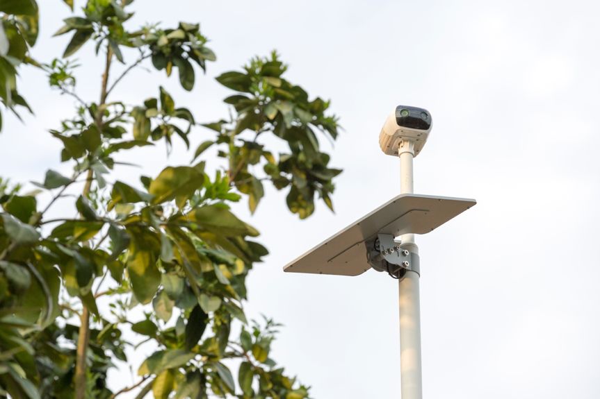 在蜜柚园的山头上,挺立着一根酷似外星人的杆子,太阳能面板上托着方方的小脑袋,两只“眼睛”俯瞰着整片柚园。“这是果园的新成员——极飞 FM1 智能监测站。” 陈贺高兴地介绍。