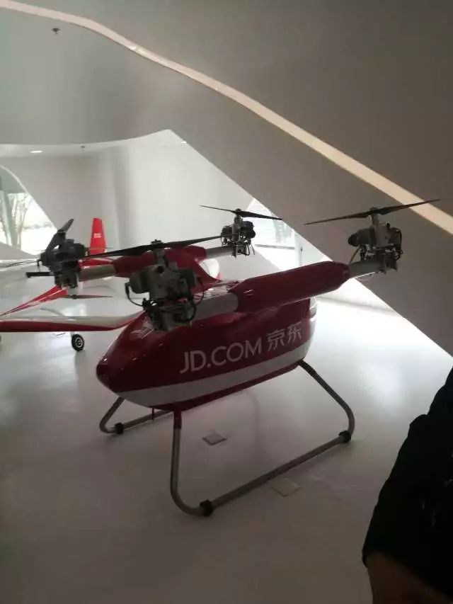会上,京东集团展示了多项无人机产品,其中,京东投资研发的物流无人机,以燃油为动力的四旋翼技术处于行业领先,在展览期间广受参观者的关注。
