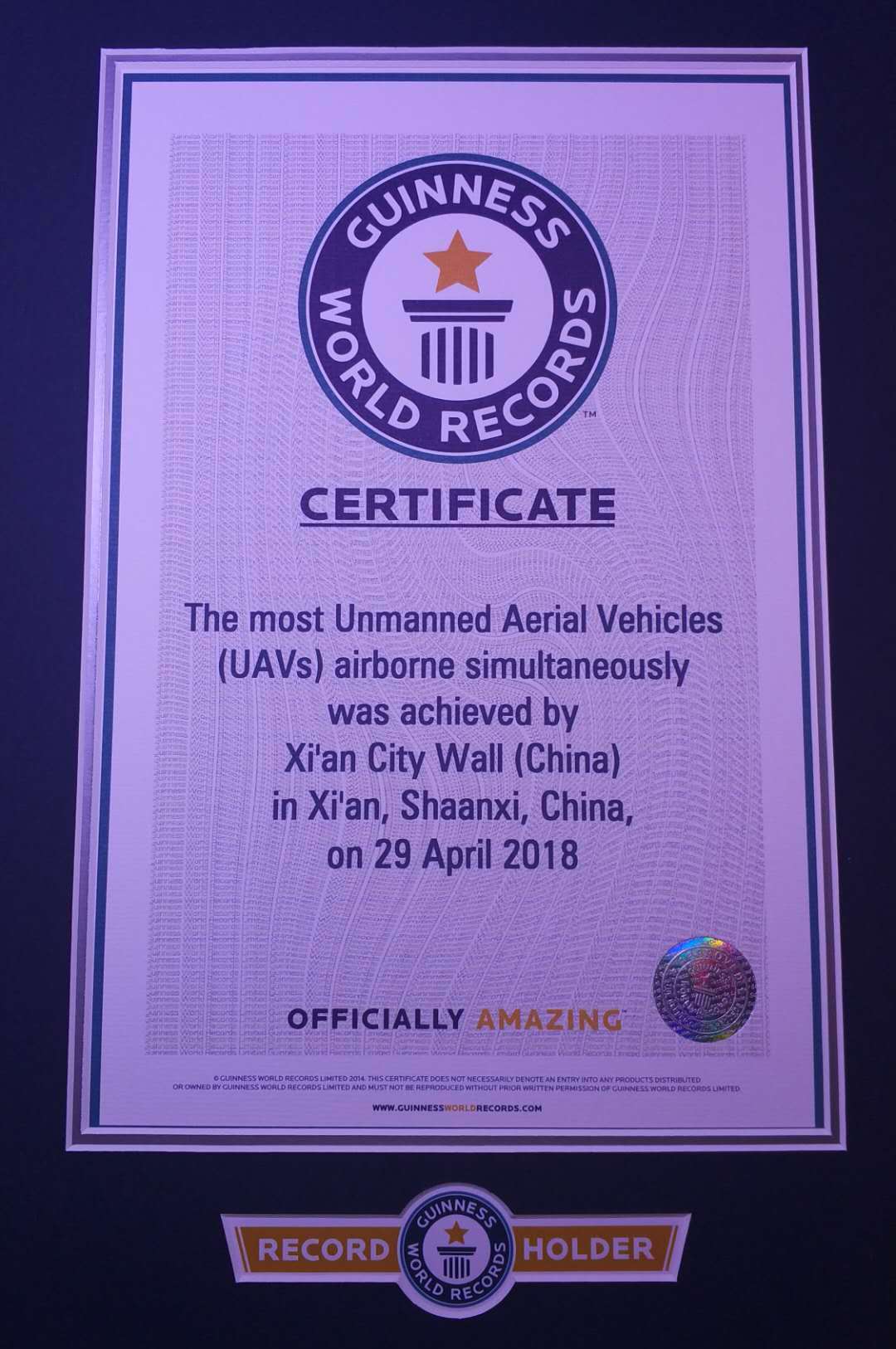 转载 2018-05-02 07:13 来源:经济日报一项新的吉尼斯世界纪录产生了!中国无人机厂商亿航白鹭4月29日在西安古城墙前进行了1374架无人机编队飞行表演,获得吉尼斯世界纪录荣誉“最多无人机同时飞行”,同时也打破了英特尔今年2月在平昌冬奥会上创造的1218架无人机表演世界纪录。