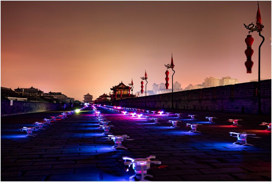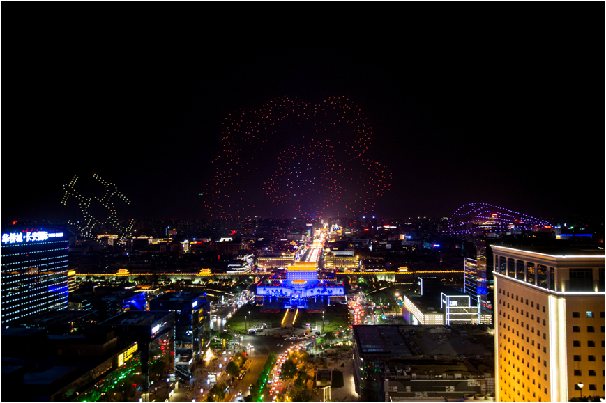 新的吉尼斯世界纪录!1374架亿航无人机点亮西安夜空