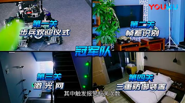 冠军队设计了“步兵欢迎阵列”,他们用了摄像头的帧差识别,只要有活动物体在摄像头前经过,就会触发客厅里的电视播放 “欢迎视频”。结果,这段视频被复仇者队冷漠无视,只得到了句“好蠢”的评价;复仇者队利用Kinect套组设计了体感识别,必须有人高举双手做投降状站在摄像头前,否则就会触发警报扣分,结果,冠军队一进别墅,直接就把Kinect给关了……