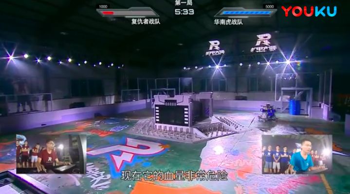 一队来自华南理工大学,他们是去年RoboMaster比赛的冠军队,队名为 “华南虎”;另一队,则是由来自上海交通大学、电子科技大学等高校高手集结而成的“复仇者”队。