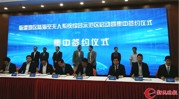 5月8日的签约仪式上,共计约20家无人机、无人车、无人船企业与临港地区海、陆、空无人系统综合示范区的运营管理方签署了合作协议,获得临港无人系统示范区首批准入许可。