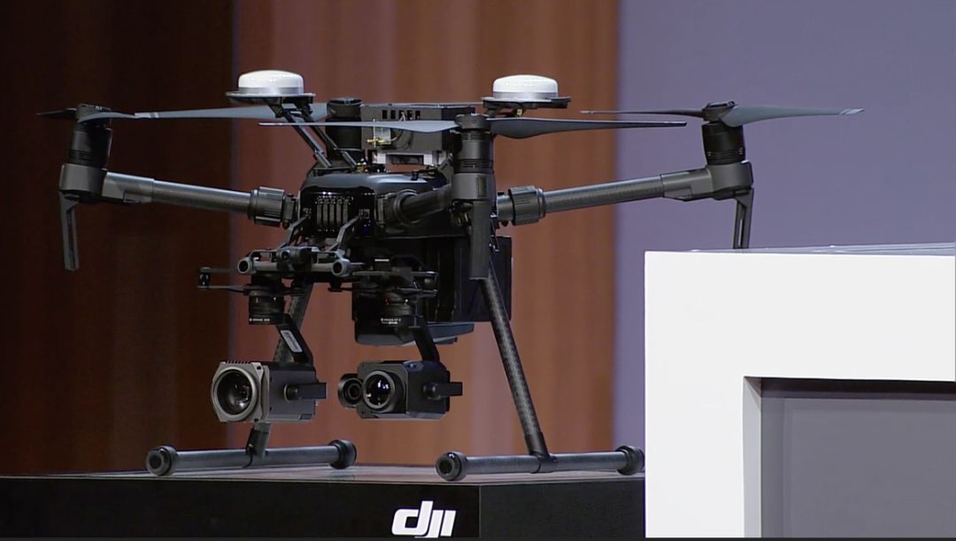 大会现场展示具备机载AI计算能力的定制M210RTK