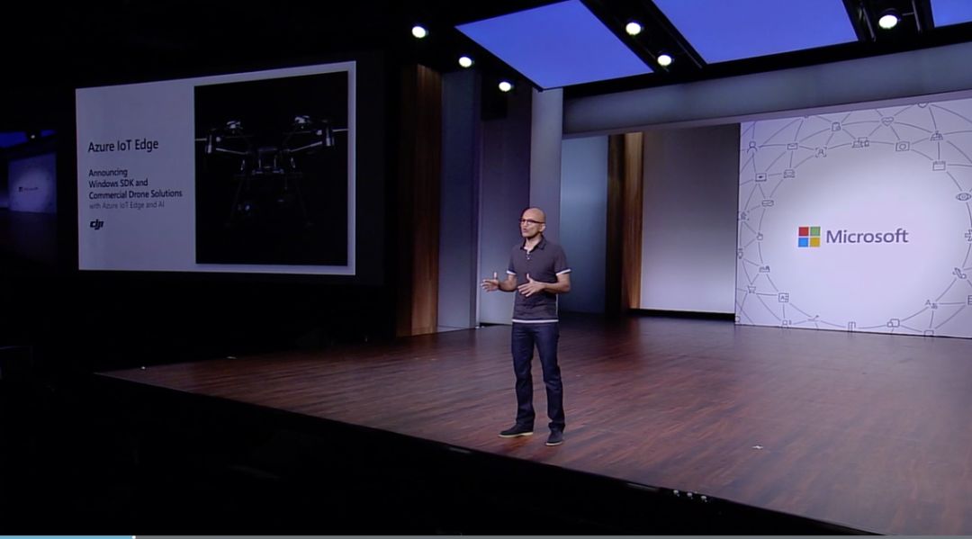 当地时间5月7日,在微软年度Build大会上,微软首席执行官萨提亚·纳德拉宣布了与大疆创新的战略合作,共同推动人工智能、机器学习技术与无人机的结合,让企业用户应用无人机与智能边缘云计算重塑生产力。