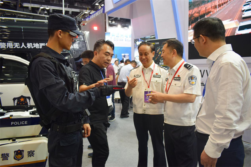 公安部警航办刘道林副主任、施锦副主任听取技术人员详细讲解