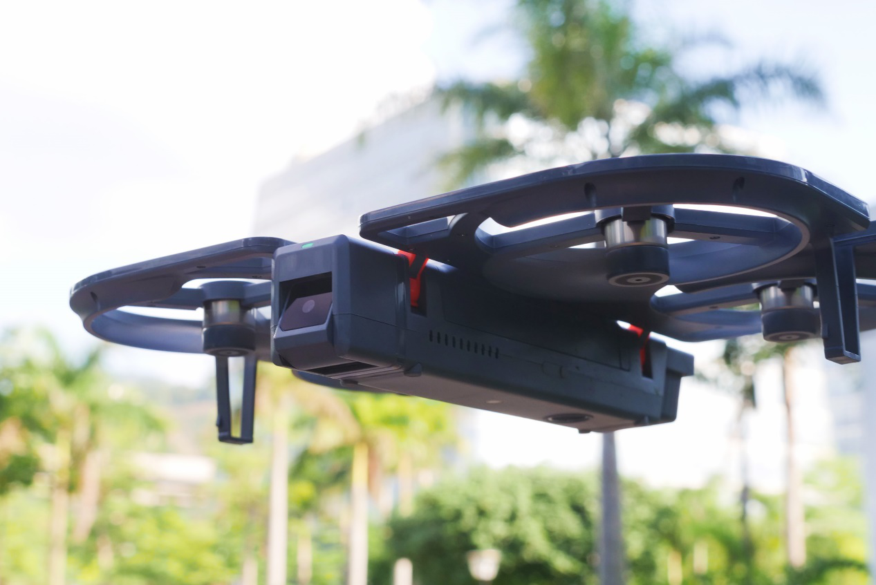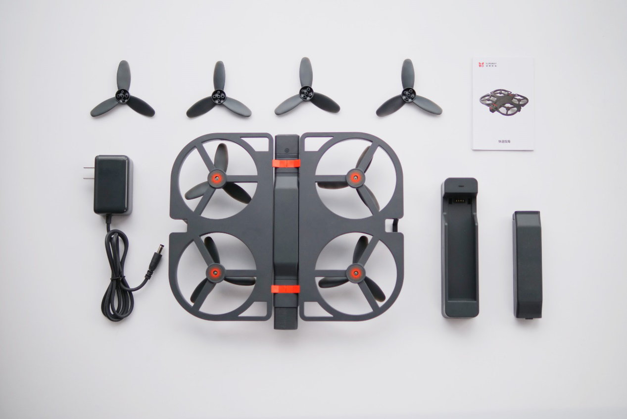 折叠便携的结构设计,350克的机身,折叠后仅有女士手提包大小,减轻用户携带的负担,一手掌握,不再让无人机成为出行负担。