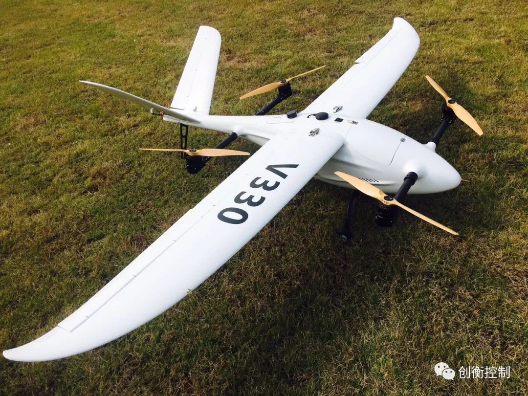深圳智航无人机公司研制的V330倾转旋翼无人机也是一款倾转四旋翼布局无人机。V330在机身纵向前后分别安装两根轴管,四旋翼结构搭载在轴管上,在飞行切换过程中倾转前部轴管实现前部两旋翼倾转完成固定翼模态切换。