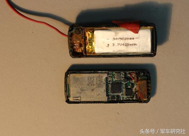 残骸中保存比较完整的部分,可以看到线路板和摄像头。