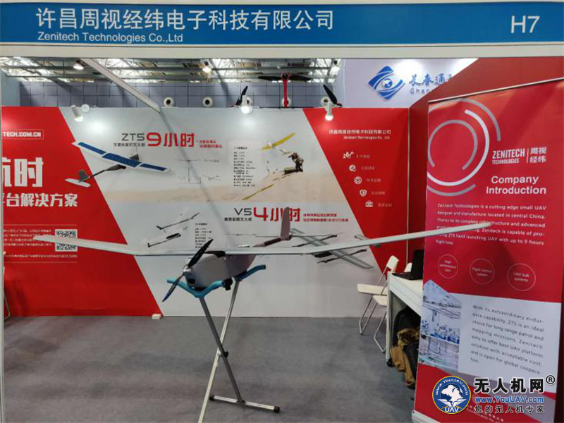 本届展会周视经纬携ZT5手抛长航时无人机和V5垂直起降无人机亮相展会。ZT5具备超长的续航能力,全电飞行航时为6小时,太阳能增程版本可达9小时。ZT5具备弹射起飞、手抛起飞,曾在各种极限环境下的测试,可应用在智慧城市、航测、对地侦察与监视、资源勘查、灾害监测、紧急物资运输等方面。