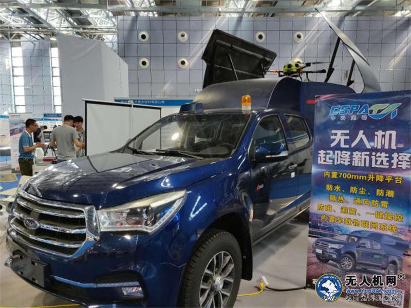 本届展会上中科灵动可以说是盛装亮相,不仅携带了多款油电混合的无人机而且还将一台可搭配无人机使用的无人车也展示给观众。很好的展示了公司从地面到空中,从携带到运输的整个一体化的解决方案。