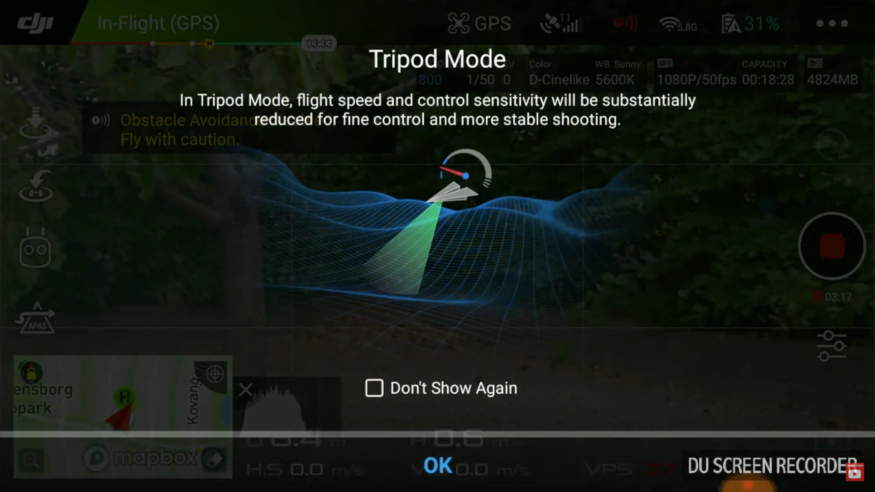 该 YouTuber 建议使用使用三脚架模式,让无人机更稳定。