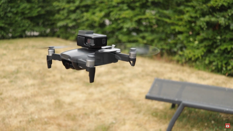 YouTube 频道「Drones and Electric Unicycles」 6 月 10 日上载一段名为「Parrot ANAFI Hack – DJI Mavic Air With GoPro Hero」的影片,示范如何令 DJI Mavic Air 也有低角度航拍的功能,那就是结合运动相机。