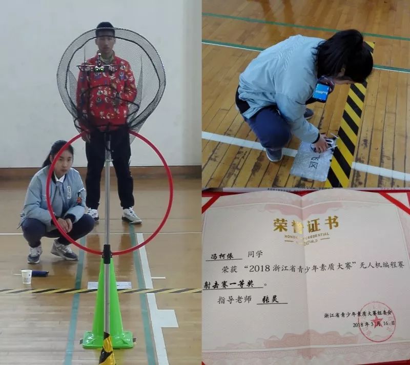 2018年初的浙江省青少年素质大赛中,得益于导师的推荐,冯同学参加了无人机编程射击赛项目,MAMBO无可非议的成为其正式的比赛搭档。比赛要求无人机必须在规定时间内,精确的飞过一个直径约为50CM的圆圈障碍物,攀升到一个半径仅为15CM的网兜前,将子弹准确射入其中,然后安全返航。可以看得出,对于初次参加比赛的冯同学,这无疑是一次极大的考验,不管是编程操作或心理上,对她来说,紧张感和不安都是正常的。但通过与MAMBO长时间的磨合与互动,她已渐渐的掌握了MAMBO的各种性能,于是放下心中不安,决定勇往直前,放手一搏。