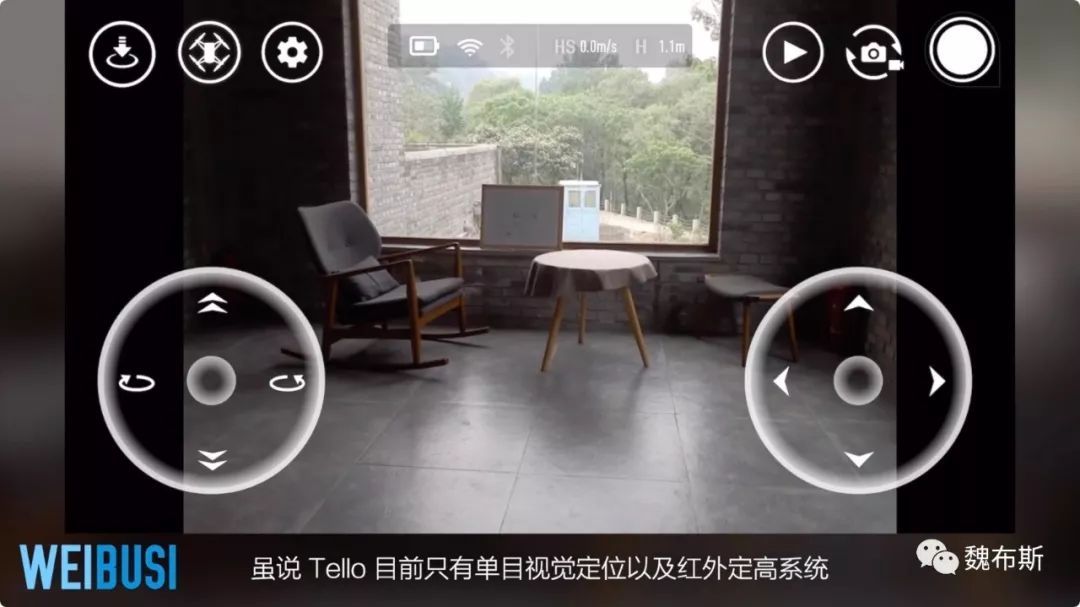 如果轻微推动飞行器(需确保安全,请勿模仿),松开后也会立刻回到原位并恢复悬停。我们尝试了进行前后左右,以及升降和偏航等操作,当放开操纵后,可以看到Tello的悬停确实非常精准。