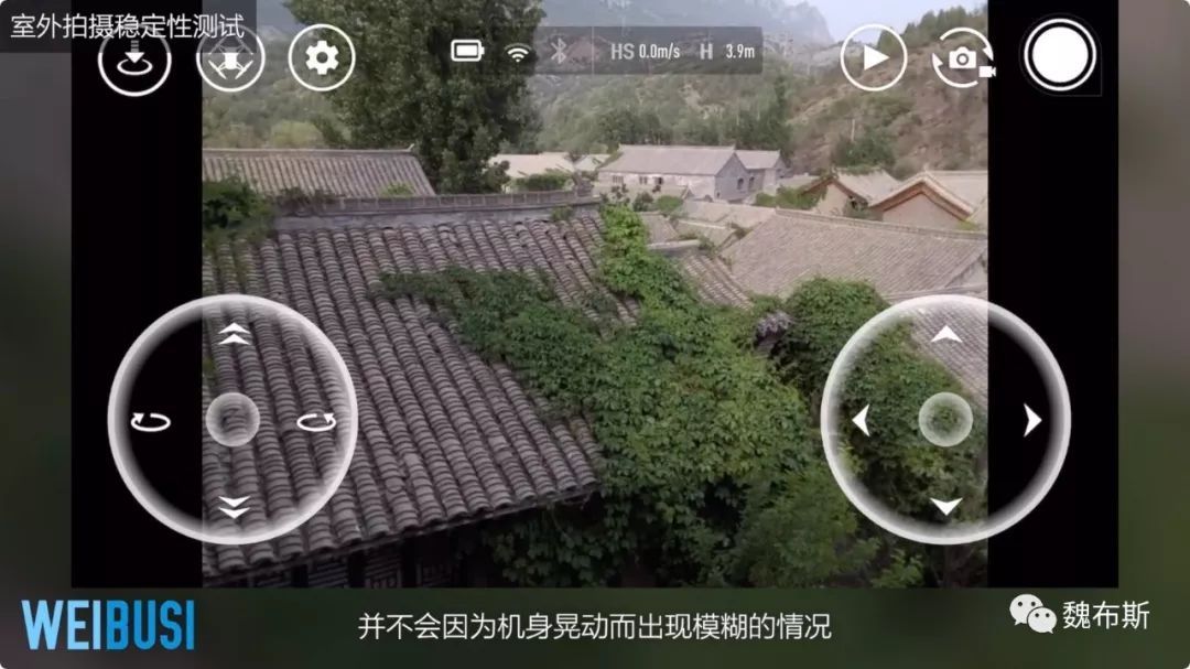 虽说Tello的相机没有机械云台,并且采用了电子防抖,因此如果在室内无风的环境飞行,从实际的取景界面来看,画面稳定性还是比较不错的。不过也正是如此,如果在室外有风的天气飞行,则必然都会出现取景界面晃动的情况。