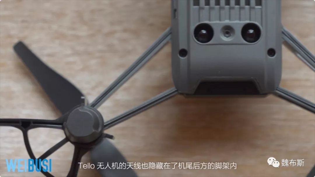 值得一提的是,在机身底部还具有一组红外传感器,以及一个视觉传感器。除此之外,特洛无人机的天线也隐藏在了机尾后方的脚架内。