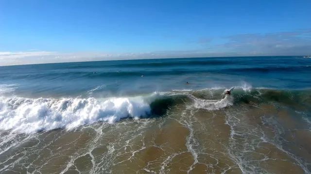 海上的波浪在大自然风力的推动下,掀起层层晶莹的浪花,一波接着一波向前冲去。