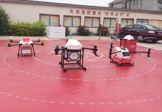 站在我身边的是京东旗下JD-X首席科学家李大鹏,JD-X是一个负责开发京东无人机的内部研究实验室。京东使用了七种类型的无人机,一些用于长途运输,另一些用于短距离运输较重的包裹。我们在张圩村所期待的无人机从基地携带着大约30磅重的货物以每小时45英里的最高速度飞来。张圩村位于刘强东的故乡宿迁郊区,这里也是京东的一个活动中心。从2017年初开始,张圩村是京东开展无人机服务的首批村庄之一,现在每天平均有4次无人机送货服务。