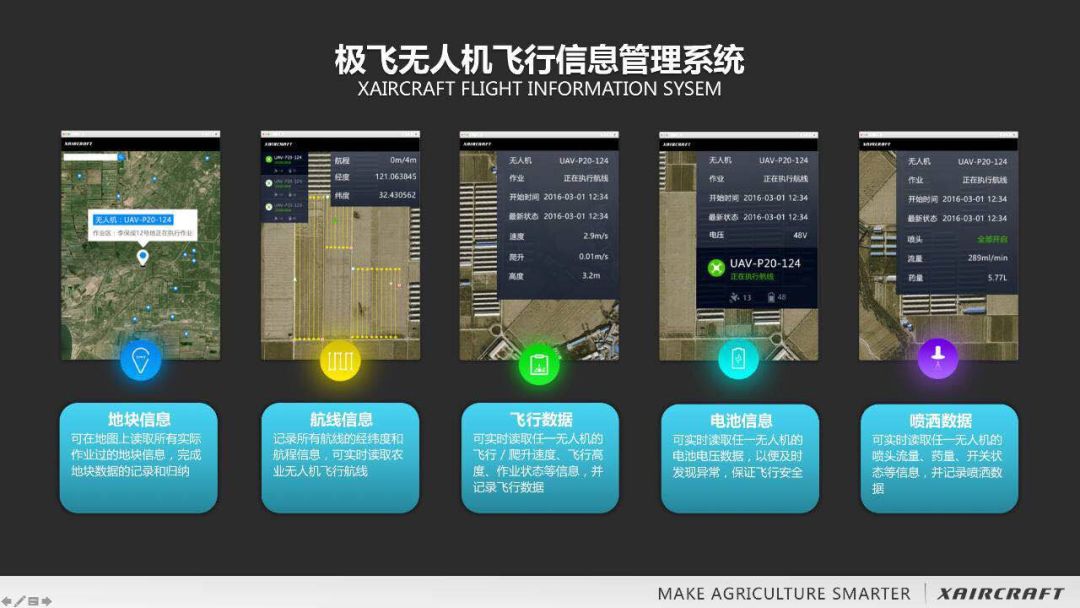 通过极飞农事服务后台,当地主管部门还可以实时获取到无人机的飞行数据和静态数据信息(包括实时飞行速度、飞行高度、飞行航向、电子围栏、飞机编号、飞行时间、喷洒参数、飞手信息等)对植保无人机和飞手进行有效管理、对无人机作业进行安全管控。同时也为2019年黑龙江省植保无人飞机购机补贴和垦区航化(无人飞机)作业补贴的重要依据和科学参考。
