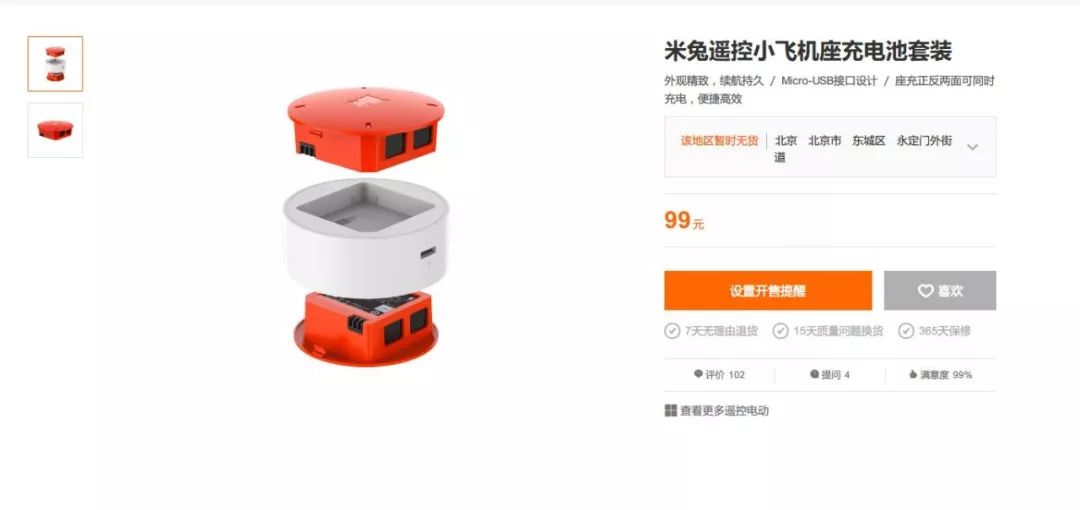 续航方面,官方宣称米兔小飞机的续航为10分钟。但要注意,这个续航成绩有三个条件:室内、无风、悬停。在实际的使用中,飞机在飞行5分钟左右就会出现电量报警提示。大多数情况下,飞机能够维持7分钟左右的续航。当然,如果是相对频繁的操作,这样的续航成绩还有有一定的缩减。如果你想要玩的尽兴,那么多买两块电池肯定是必须的。好在,官方有一个电池套装,包含两块电池和一个双面座充,售价99元,价格还算公道。