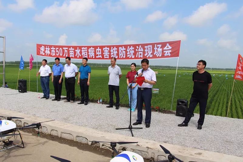 农业农村部全国农业技术推广服务中心副处长郭永旺讲到,虎林市开展的50万亩水稻统防统治作业将开创全国水稻病虫害大规模采用植保无人机飞防作业的第一次,为全国水稻统防统治飞防作业树立了标杆,积累了经验。农业的发展离不开各级政府的大力支持,农业的创新离不开各科研单位的共同努力,农业的收获离不开农技推广工作者和广大农民朋友的辛勤劳作。希望大家共同携手努力,为我国乡村振兴战略的实施,为农业的绿色发展而努力奋斗。并预祝虎林市50万亩水稻病虫害统防统治取得圆满成功,期待虎林市的农业工作再上新台阶!