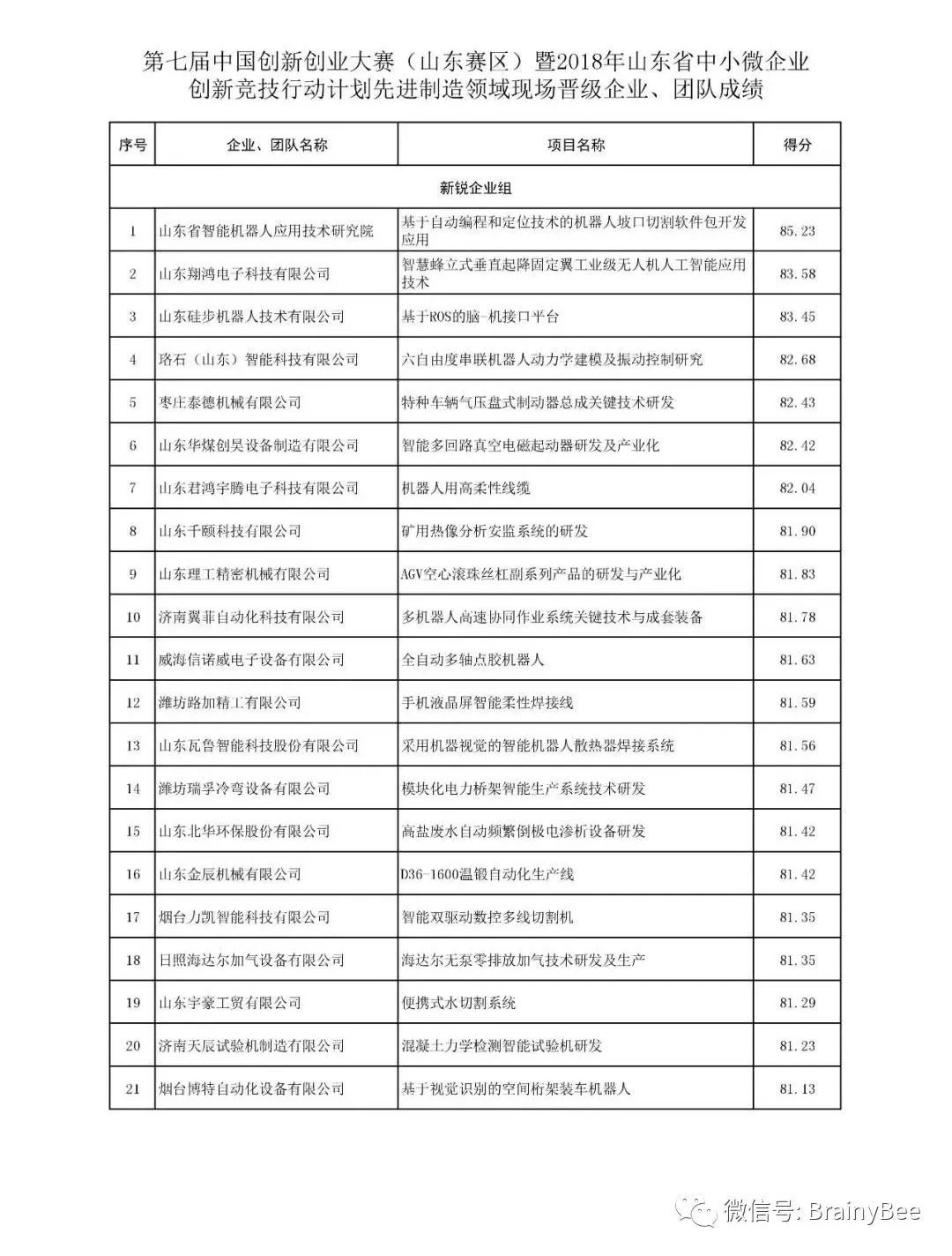 附:第七届中国创新创业大赛(山东赛区)暨2018年山东省中小微企业创新竞技行动计划电子信息领域现场晋级企业、团队成绩