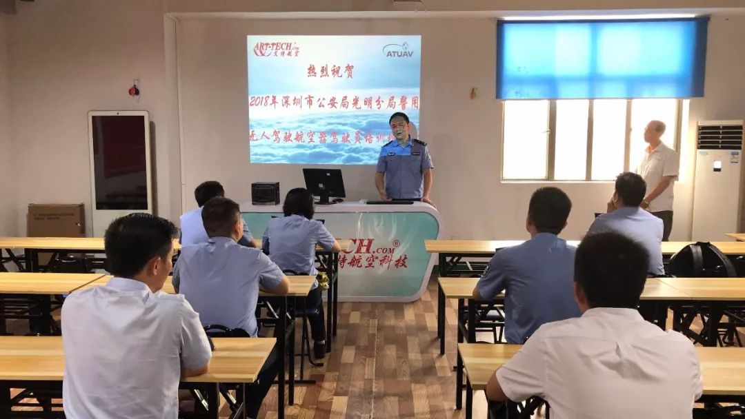 8月13日,深圳市光明公安分局警用无人机驾驶员培训开班仪式在艾特航空顺利召开。