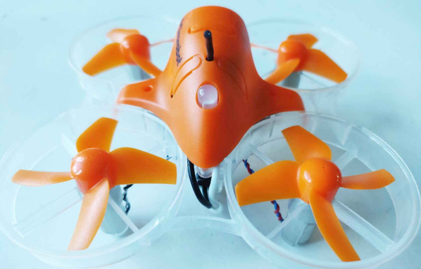 S85整体的设计感很强,机身为橘色醒目显眼,外部透明的涵道式保护罩设计充分的起到安全保护作用,同时即便是不小心碰到小小的桨叶对用户的伤害几乎可忽略不计。前端有FPV摄像头的部位为机头位置,“倒三角”带尾灯的为机尾。当电量充足的情况下,尾灯将会是绿色常亮,一旦电量不足这个LED尾灯将会亮起红色提醒玩家该更换电池了。